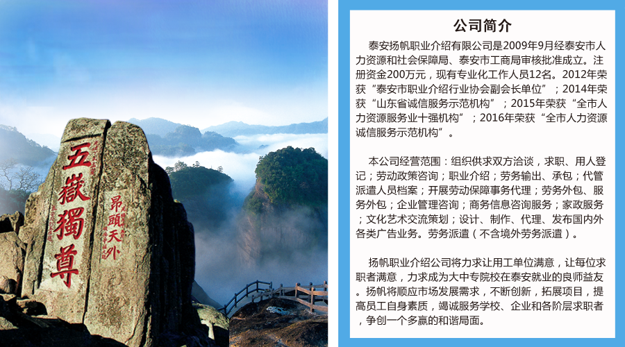 • 【招聘公告】泰安揚(yáng)帆職業(yè)介紹有限公司某國有企業(yè)招聘簡章 [2025-09-11]